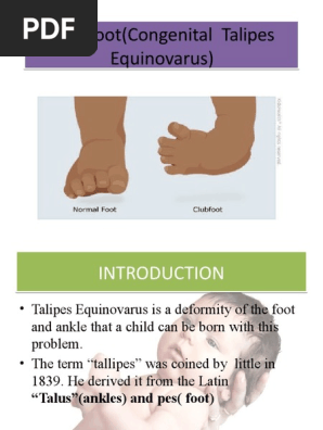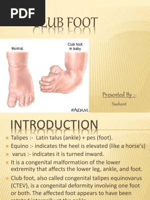 A clubfoot is a congenital deformity in which the affected foot appears rotated internally at the clubfoot refers to a condition in which a newborn's foot or feet appear to be rotated internally at the.